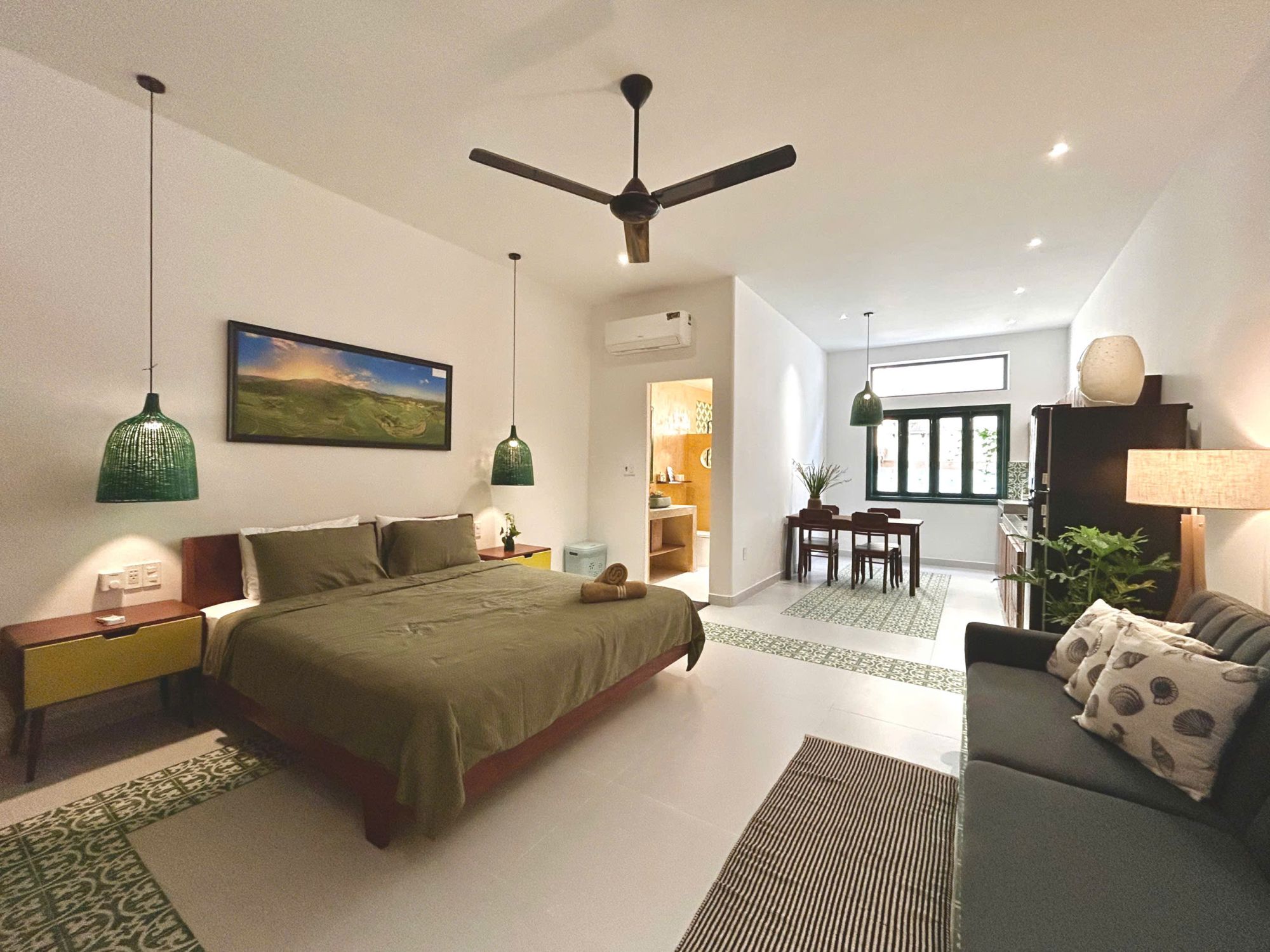 The 3-bedroom studio is compactly designed with a convenient kitchen, cozy living room corner and small balcony - ideal for those staying for a long time, wanting to be proactive and feel at home.