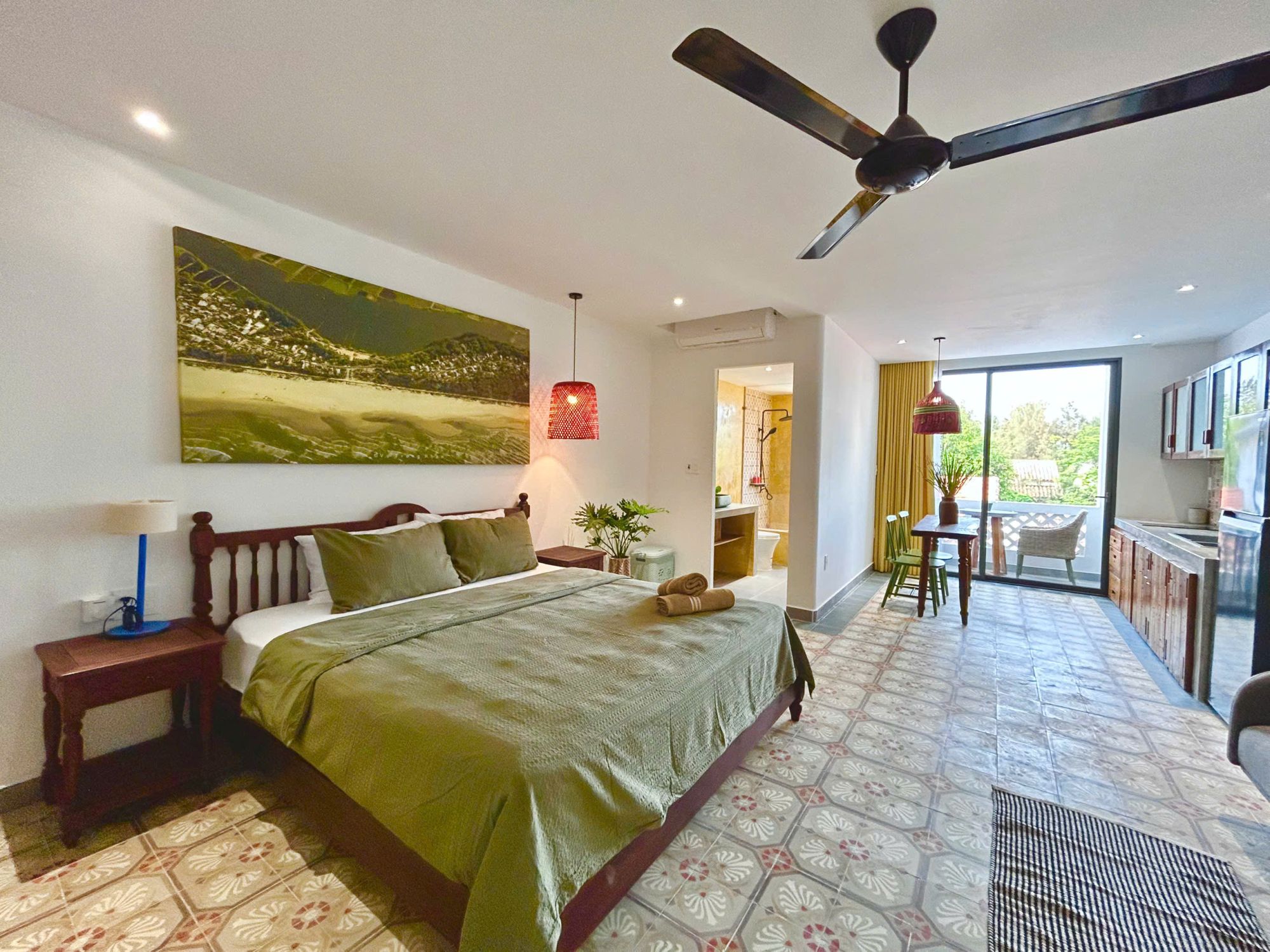 The 3-bedroom studio is compactly designed with a convenient kitchen, cozy living room corner and small balcony - ideal for those staying for a long time, wanting to be proactive and feel at home.