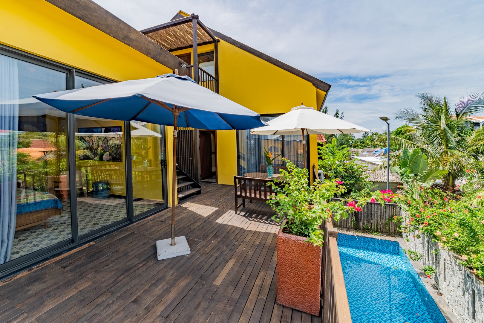 Just steps from An Bang Beach, May Villa is the largest in the Beachside series, offering 6 bedrooms split into 2 private wings, each with its own living room and kitchen – perfect for large families or groups of friends.